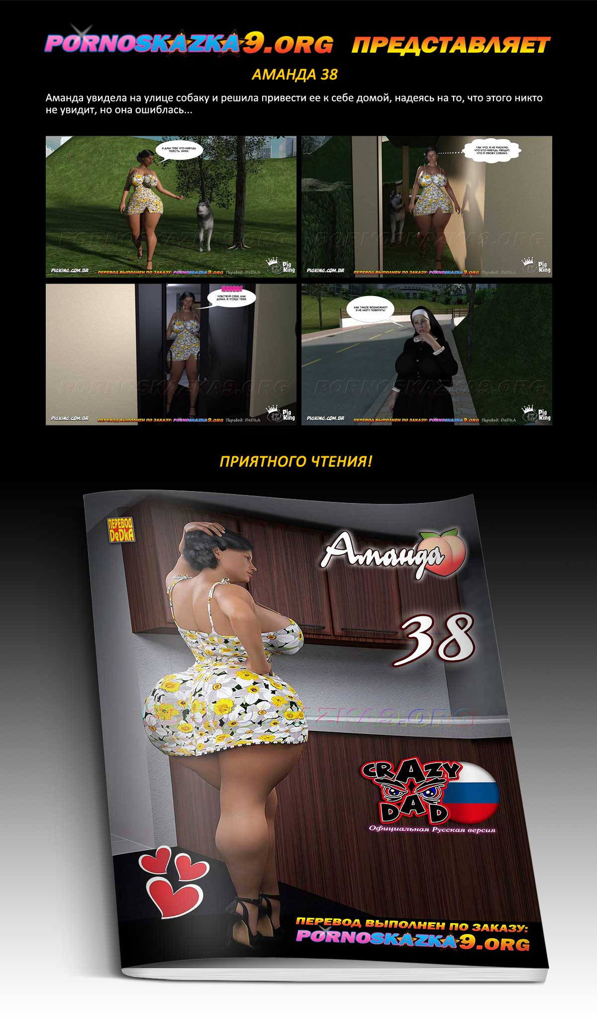 Порно комикс Аманда. Часть 38. Аманда увидела на улице собаку и решила привести ее к себе домой, надеясь на то, что этого никто не увидит, но она ошиблась…